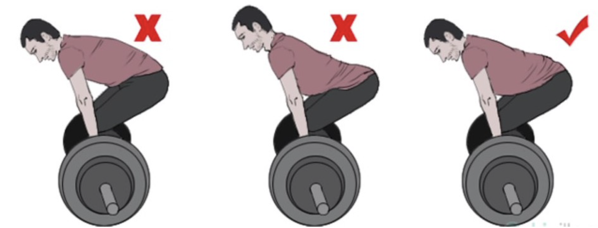 물건을 들거나 운동을 할 때 중량을 우리 몸과 멀리 떨어져서 들게 되면 허리는 많은 부하가 걸리게 됩니다. 아래에 있는 물건을 위로 드는 힘을 최대한으로 쓰기 위해선 최대한 가깝게 붙어서 안전하게 들어 올려야 합니다. 우리 인체의 몸중심선을 기준으로 위에서 바라보았을 때 바의 위치는 자신의 발바닥 중간에 위치할 수 있도록 준비하고 운동을 수행해야 합니다.